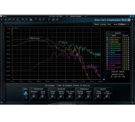 A multi-track frequency analyzer for monitoring several audio sources simultaneously.