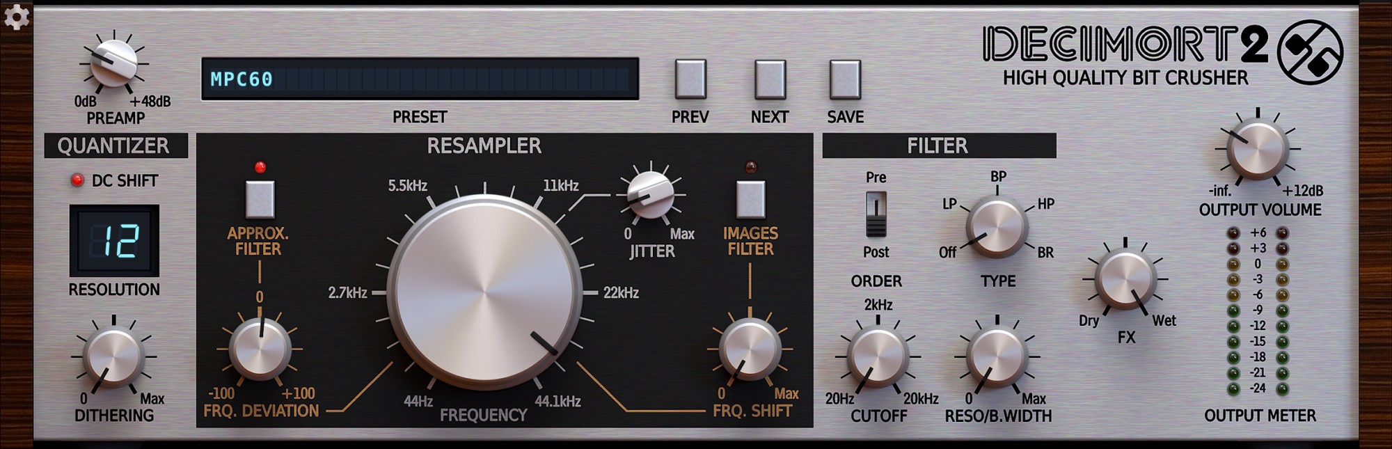 Recreate vintage sampler vibes with Decimort 2, offering bit crushing and sample rate reduction for warm, gritty sound.