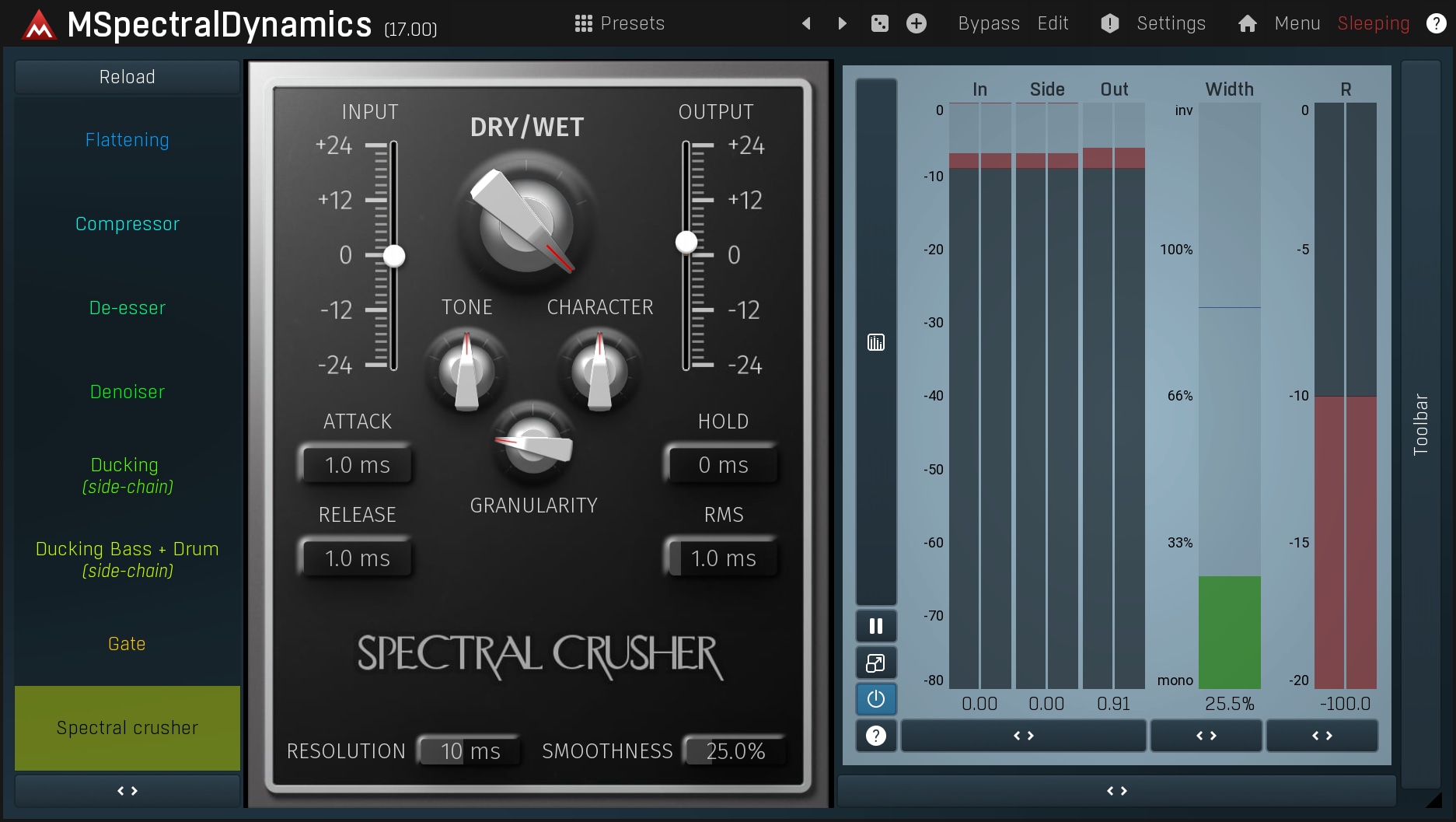 A spectral dynamics processor for frequency-specific dynamic shaping.