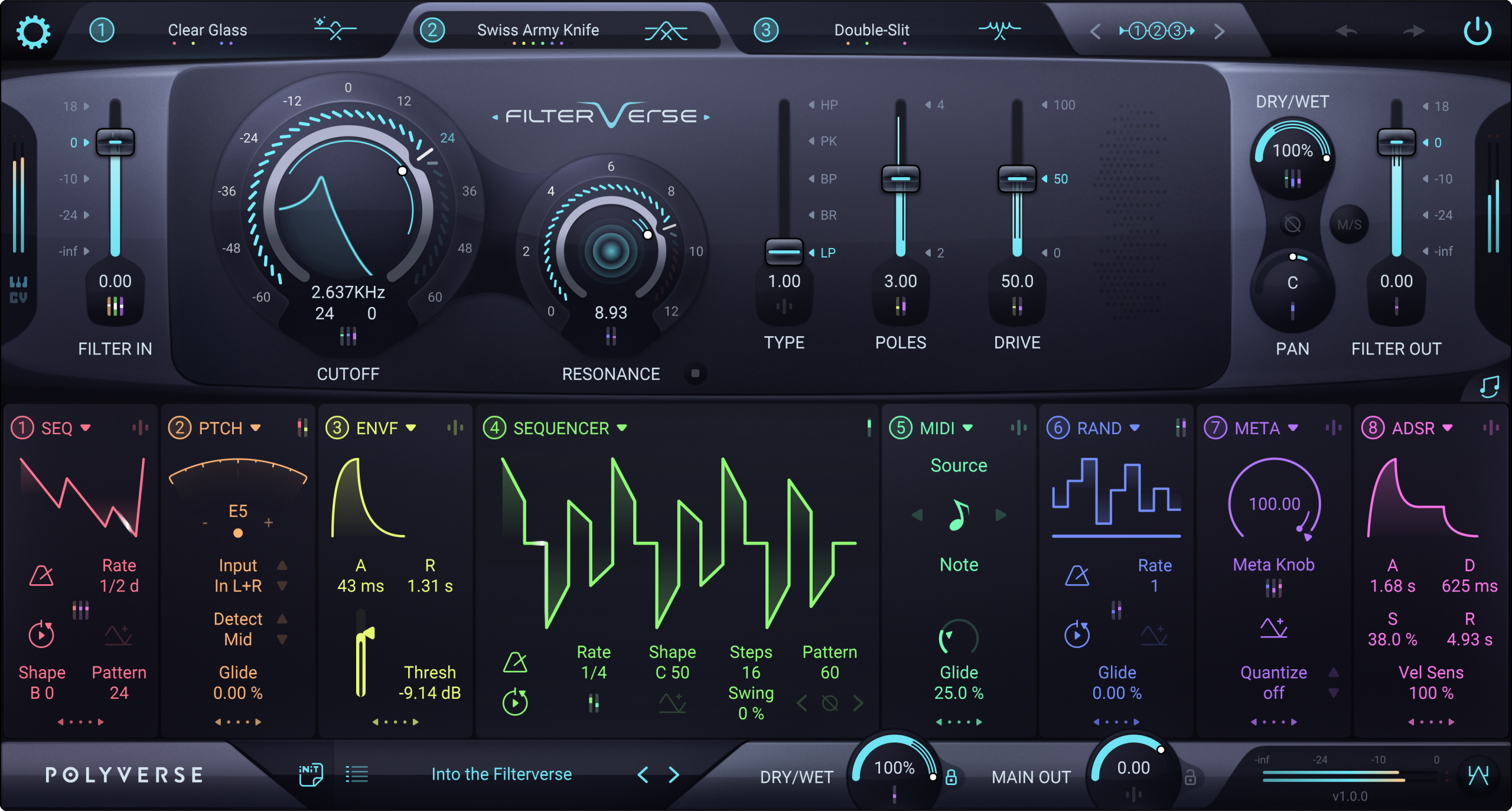 Comprehensive filter plugin with 30 filter types and extensive modulation options.