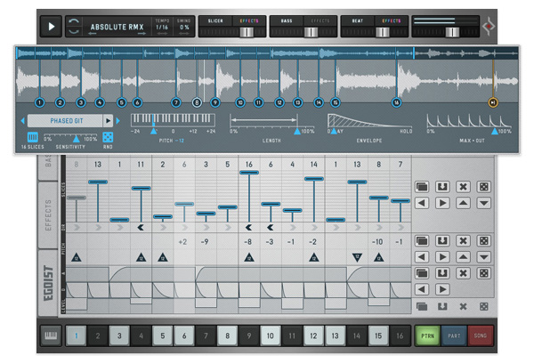 Groove instrument combining slicer, bass synth, and drums. Polyrhythmic sequencers and 1,000+ samples for sketching beats.