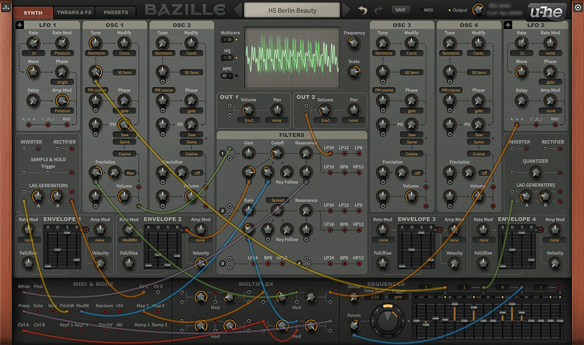 u-he Bazille is a semi-modular software synthesizer combining digital and analog synthesis, offering a wide range of experimental and evolving sounds.